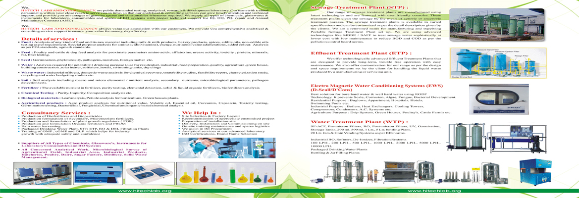 We kindly request you to register our name as a preferred services provider of analytical service & any kind to your water & waste water treatment plants as well as supplier for supply of spares and consumables required for water & waste water treatment plants.